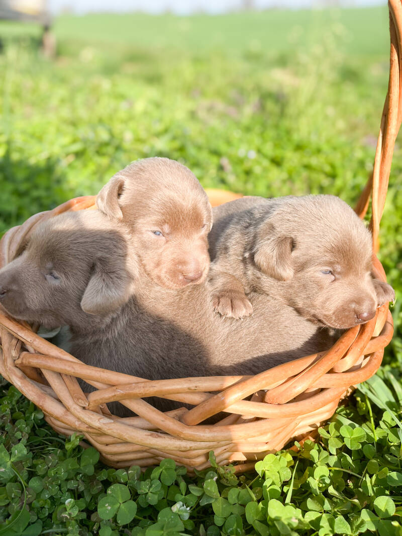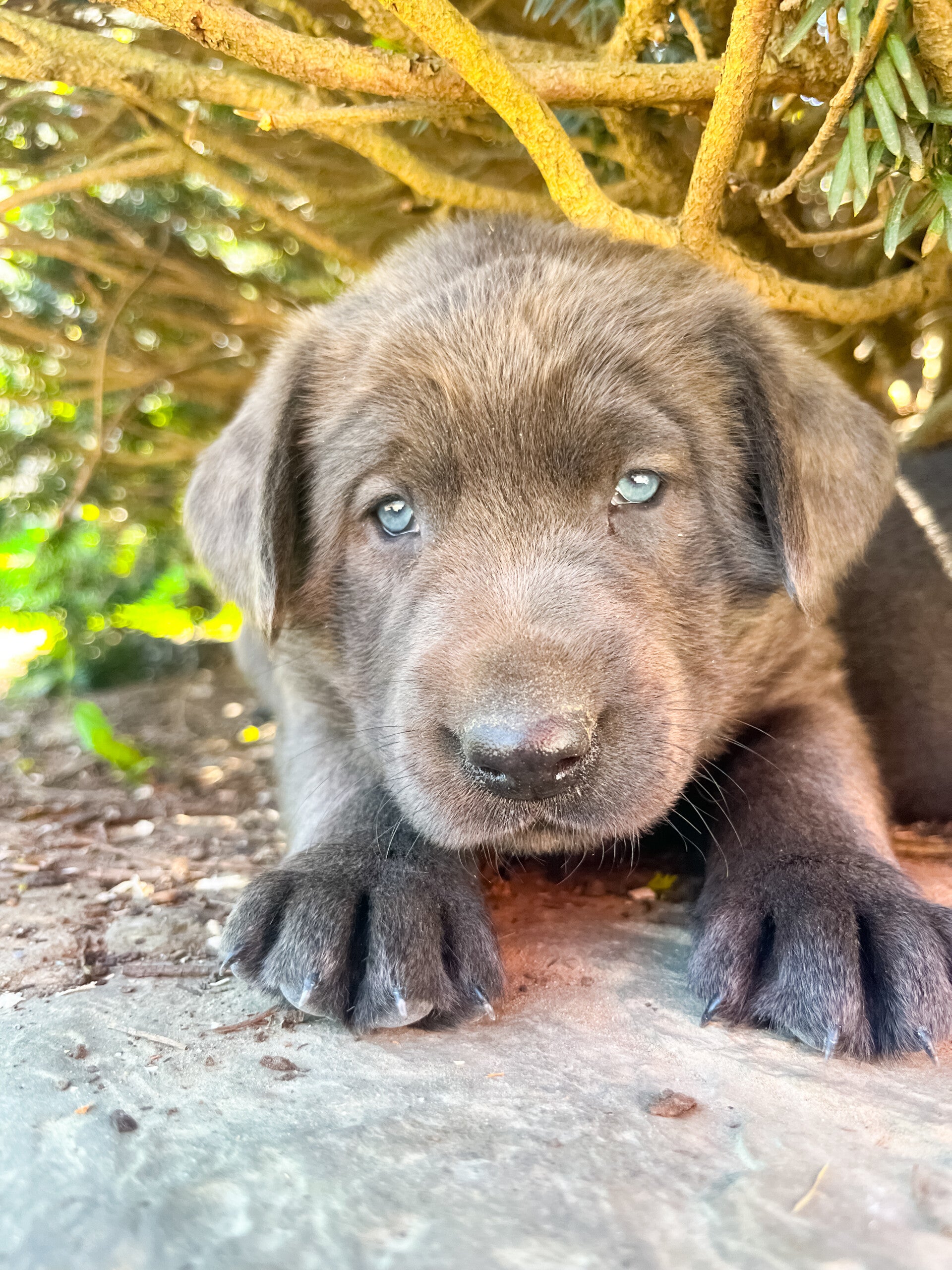 Navy and Suede are expecting their first litter together this summer. Navy is a good girl who reminds me so much of Penny. She is young 1.5 yrs; so Navy is my running partner and she does not need a leash. She has a lot of energy because she is younger but my favorite time with her is at night, before bed. She communicates so well how much she loves you through her eyes. Navy is bigger than Penny and she has an absolutely beautiful coat. She and Suede both have the most beautiful coats I've ever seen on silvers. Navy has never had any skin issues (silver labs can have allergies once in a blue moon.) She drops the ball for you to throw, which I personally love, that's not always trainable and no one likes the grapple for the ball. She has never growled in her life though she does not like Amazon deliveries for some random reason. My kids hang all over her. This will be her first litter, and first litters are usually the healthiest. Looking forward to see what colors and sizes she and Suede throw. Suede is raised by my good friend Patty. Suede is Patty's baby. The way he watches Patty for direction if very special,he's never run off, he's never not done what she has requested. Once he's done his job for us he's very happy with a cheeseburger and a nap. He is a VERY special boy, with a beautiful English boxy head, coat; Suede is smart and attentive. Patty has done an amazing job with him. (See the stud tab.) Also, both Navy and Suede are inside family dogs. They are not overbred, outdoor, pieces of machinery. They are loved family members.